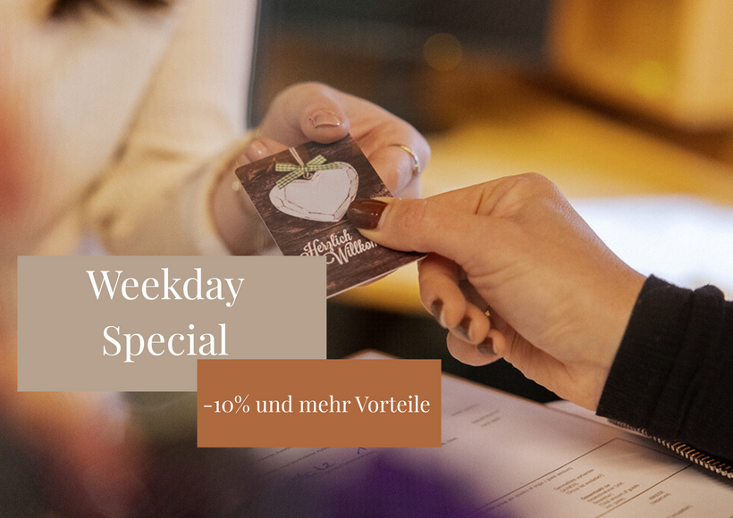 💸 Exklusiver Midweek-Vorteil von 10 % auf den Übernachtungspreis